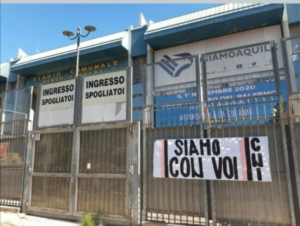 A pochi minuti dal match Palermo – Avellino sui cancelli del Renzo Barbera sono stati appesi dei piccoli striscioni dalla Curva Nord Inferiore. Il gruppo organizzato ha tenuto a far sentire la propria vicinanza ai calciatori.